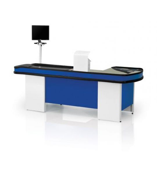 Utilizado passagem de produtos na saída do suprmercado; Tampo em aço inox com esteira elétrica; Superfícies metálicas tratadas e pintadas com tinta epóxi-pó; Gaveta com chave; Perfis e para-choques em PVC; Kit automação; Profundidade de 1000 mm; Autura de 940 mm;