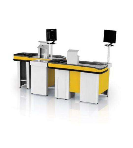 Utilizado para passagem de produtos na saída do supermercado; Tampo em aço inox; Superfícies metálicas tratadas e pintadas com tinta epóxi-pó; Gaveta com chave; Perfis e para-choque em PVC; Kit automação; Profundidade de 1000 mm; Altura de 940 mm;